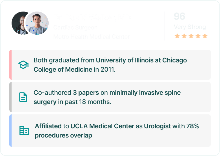 Instantly see who they’re connected to and surface strong ties. Filter by procedures, location, or connection depth to focus on the best prospects.
